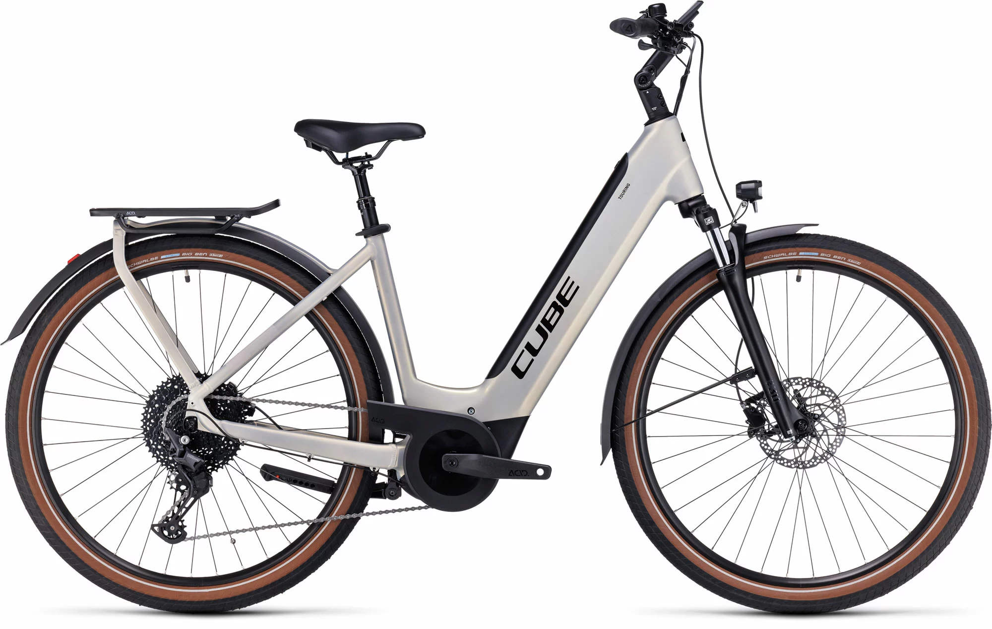 Cube made our Touring Hybrid to be versatile, easy to live with and comfortable. The powerful Bosch Performance motor with Bosch Smart System and PowerTube battery are all so neatly integrated into the design, you’ll barely notice they’re there – apart from the extra help at the pedals, of course. Revised Efficient Comfort Geometry centres around a 63mm travel suspension fork for comfort and control, even on rough roads. The IC 3.0 integrated carrier is full of neat design touches to make load carrying simple, and the seat clamp even has a hidden tool in its lever. Add the new ACID chain guard, kickstand and full-length mudguards and you’ve got everything you need. And, with a choice of classic Men’s, Trapeze or Easy Entry frame designs, there’ll be a style and size that’s perfect for you.