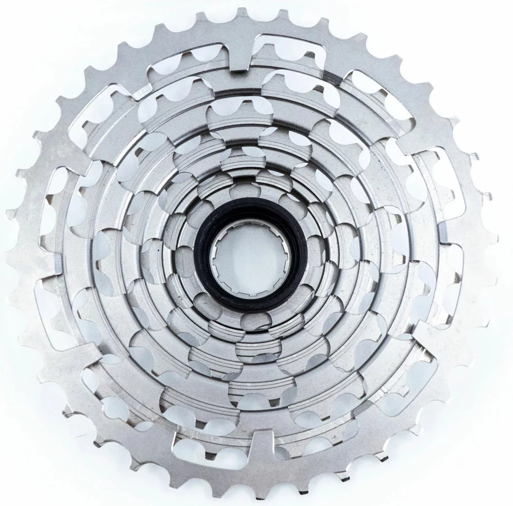 En prime, les pignons Helix R 12s sont rétrocompatibles avec la cassette TRS+ 9-50T et peuvent être utilisés pour mettre à niveau cette cassette. Le petit pignon de 9 à 36 dents proposé ici a été fabriqué en acier.
