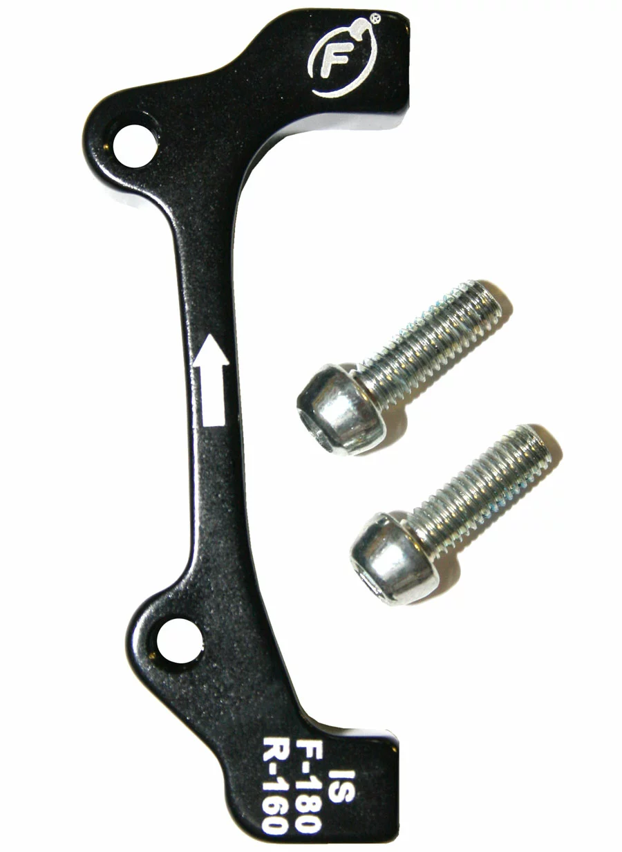 Adaptateur Formula, adapté aux disques avant de 180mm ou aux disques arrière de 160mm avec logement de frein IS2000. Vis incluses.