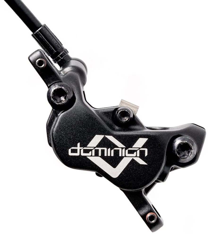 Le nouveau levier du Dominion est robuste et la largeur du levier peut être ajustée sans outils. La position de l’étrier de frein peut être réglée au niveau du raccord de la vis de frein avec une vis sans tête de 2 mm. Le vissage est réalisé avec la technologie Matchmaker de SRAM, mais il existe également un adaptateur pour le montage I-Spec 2 de Shimano. L’étrier de frein de la Dominion 4 a été entièrement redessiné et promet une puissance de freinage extrême. Il existe un réglage de la course du levier et de la position associée du piston maître