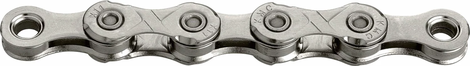 La chaîne super légère X11R 11 vitesses de KMC sans dépendance du sens de marche et plaques extérieures nickelées pour les systèmes de changement de vitesse 11 vitesses.