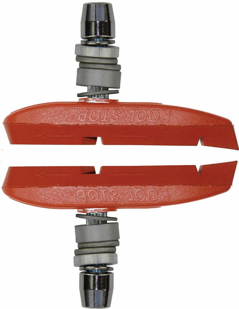 Le système Kool Stop PAD-LOCK permet un alignement précis du patin de frein par rapport à la jante grâce à l’utilisation de disques concaves et convexes. Avec un mélange de caoutchouc qui protège la jante.