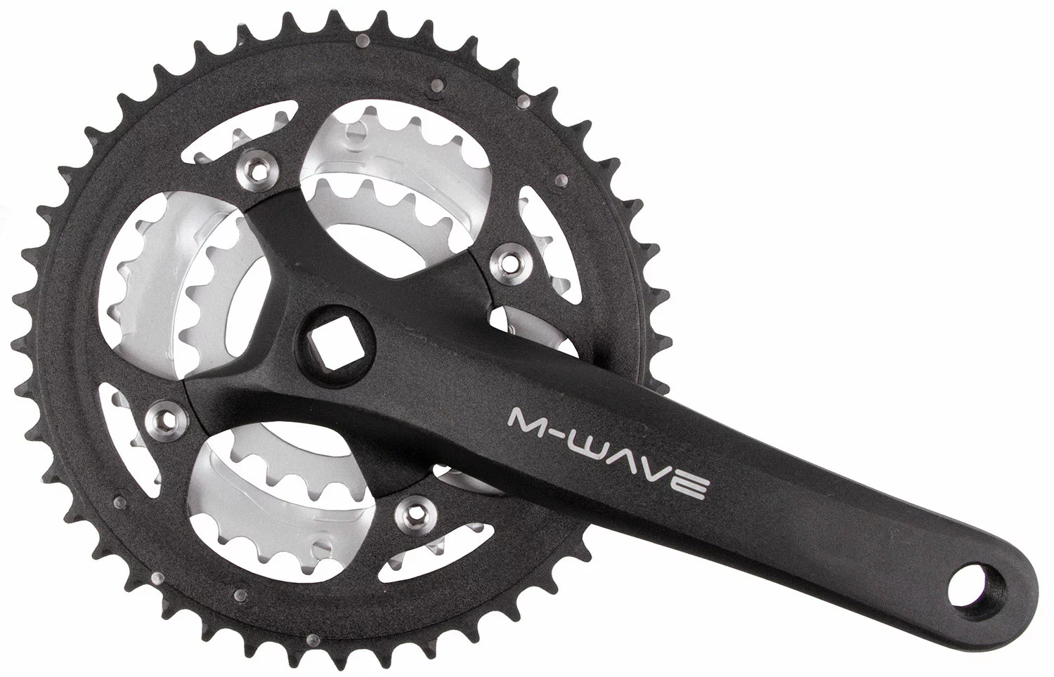 La manivelle carrée M-Wave 3 x 8/9 vitesses est en aluminium et offre la possibilité de changer les plateaux si nécessaire.