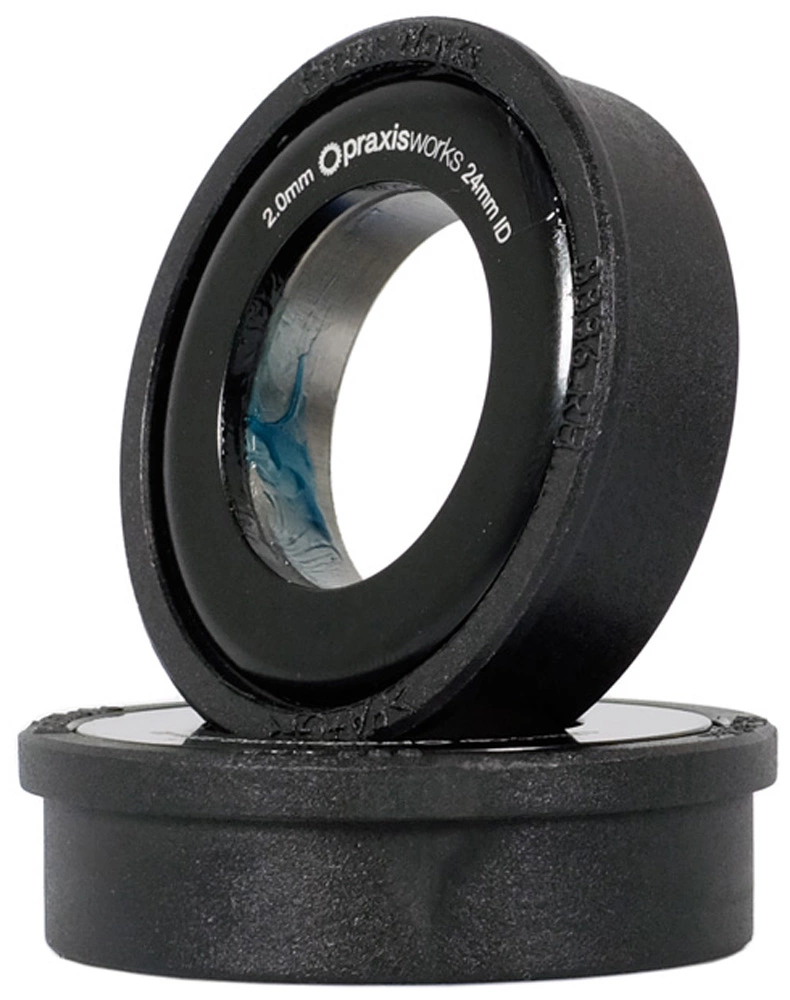 Ce roulement intérieur de conversion intelligent de Praxis Works permet de monter des manivelles Sram GXP ou Praxis M24 avec un axe en acier de 24 mm sur des cadres avec un logement de roulement BB86, 90 ou 92.