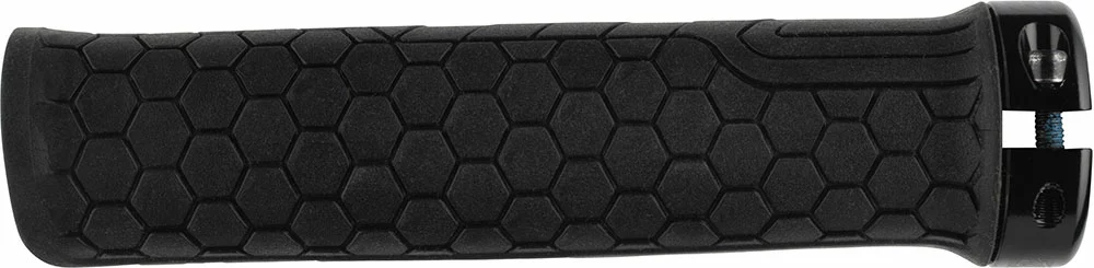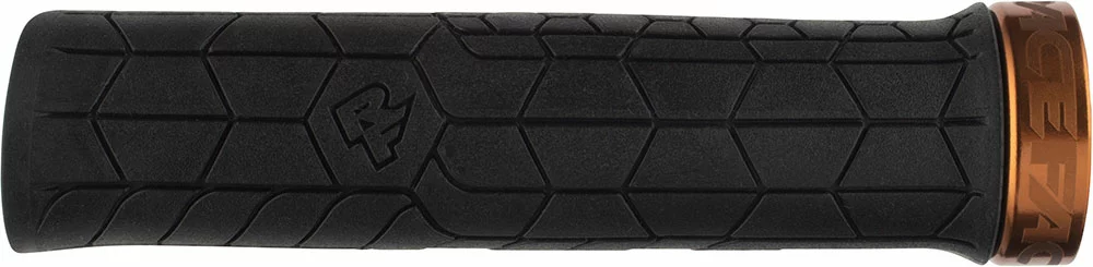 Construit avec un composé de caoutchouc exclusif Race Face et fini avec un motif hexagonal directionnel pour correspondre à la forme naturelle et à la courbure de vos doigts lorsque vous saisissez les barres, ce grip léger a un noyau interne conique pour empêcher la torsion et un diamètre d’extrémité accru pour garder vos mains sur les barres.