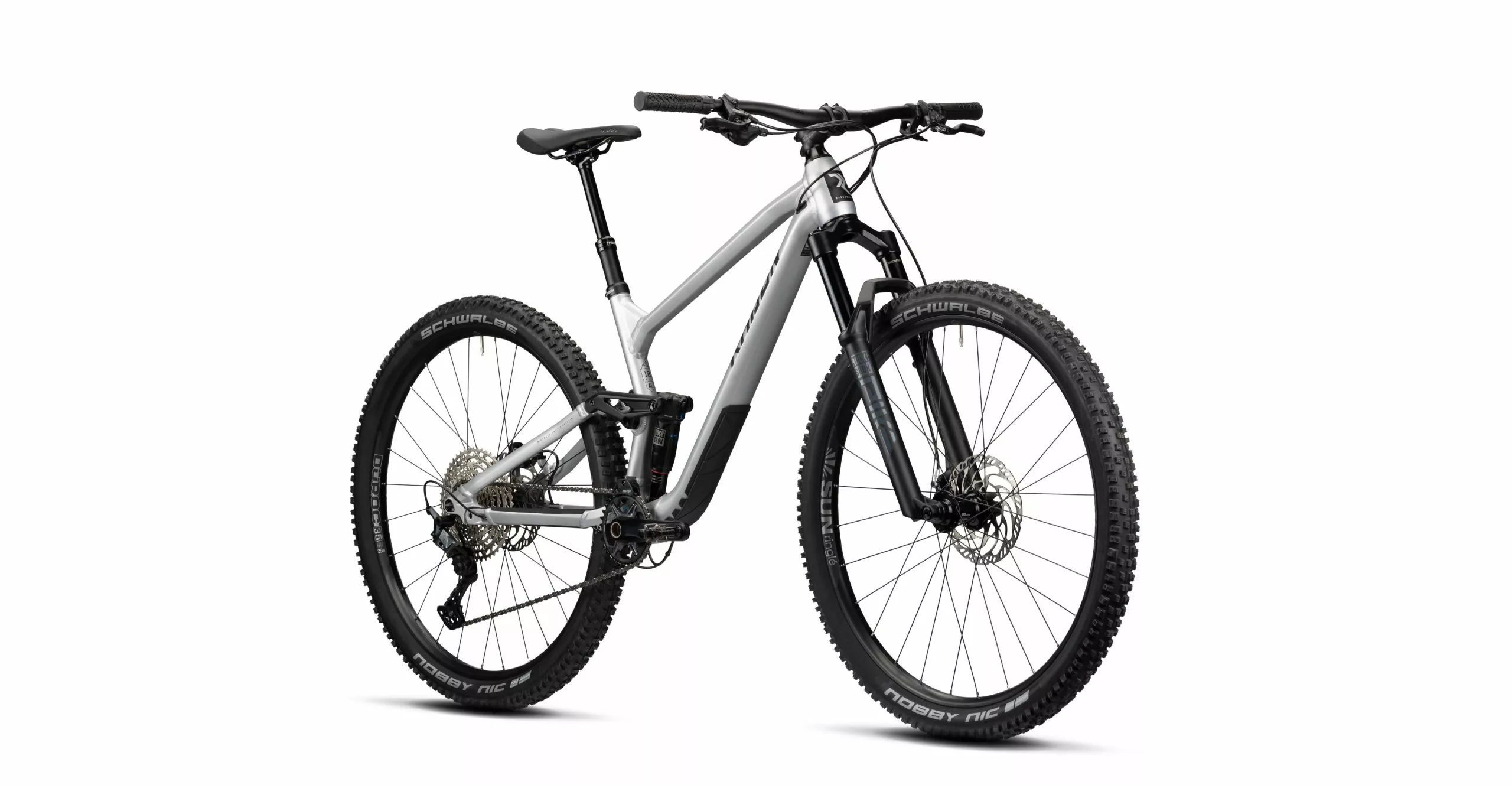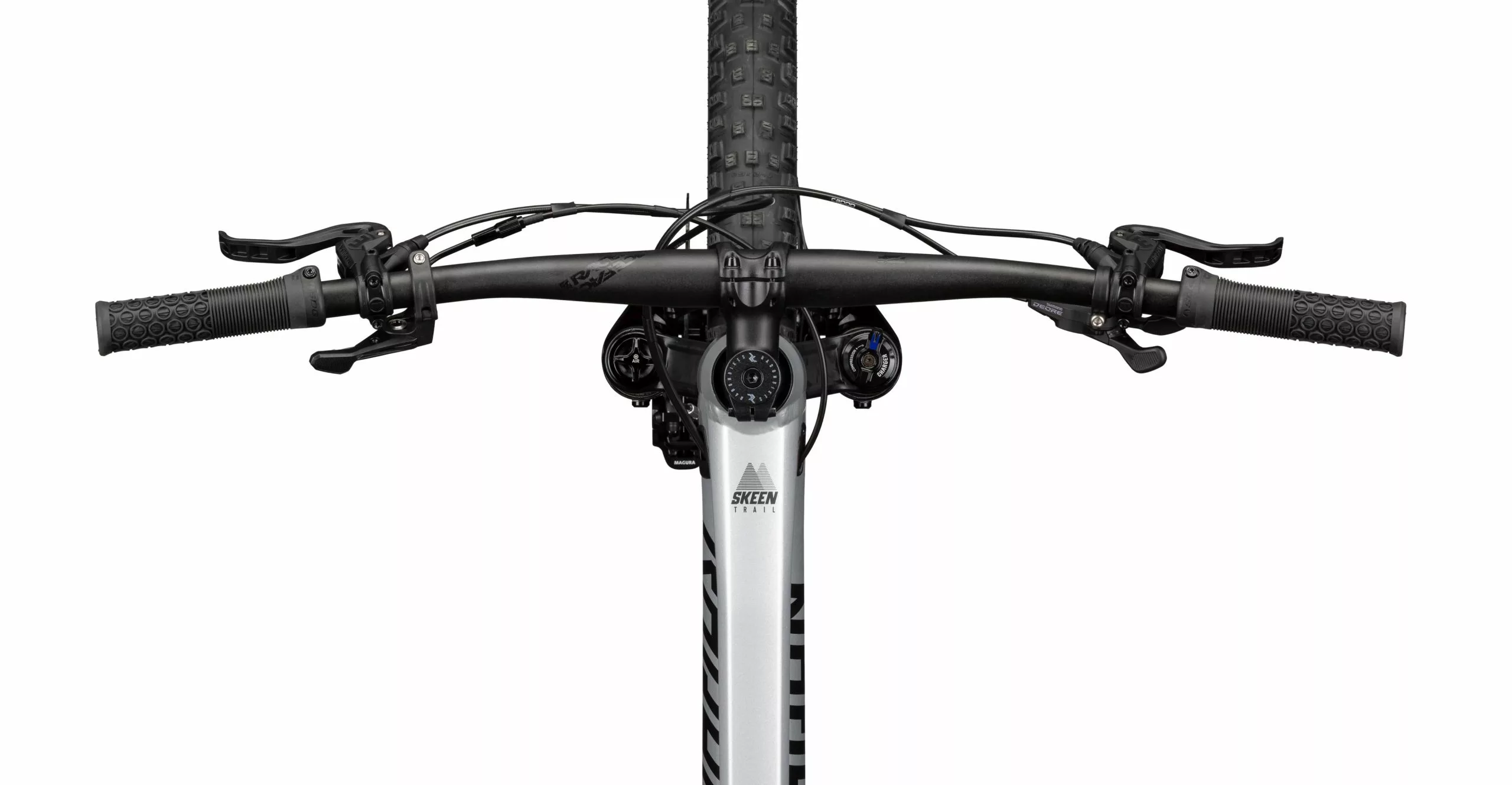 The RockShox Pike Select fork with Charger RC cartridge and large DebonAir+ air chamber offers 130mm at the front and will sweeten your mood especially on rough trails. The combination with the RockShox Deluxe Select+ ensures a balanced chassis and, thanks to the platform, is ideally suited for long tours as well as technical single trails. The groupset is a mix of Shimano’s high-quality DEORE and SLX series: with 12 gears and a large 10-51 tooth cassette, you have a huge range on board and therefore always the perfect gear at hand, whether it’s a long climb or a fast flow trail. Also on board is the powerful Magura MT Thirty Custom – four pistons at the front and two pistons at the rear result in a finely controllable and powerful brake for every situation. On the SUNringlĂ© DĂĽroc 35 with a wide 31mm inner rim width, we fit the trail classic Schwalbe Nobby Nic in 2.4″ width. If you find yourself at the trailhead after a hard-fought uphill, you can comfortably lower the adjustable dropper seatpost from the handlebars, set all suspension elements to open and take off into the trail fun. We wish you lots of downhill fun with the SKEEN TRAIL AL 7.0!