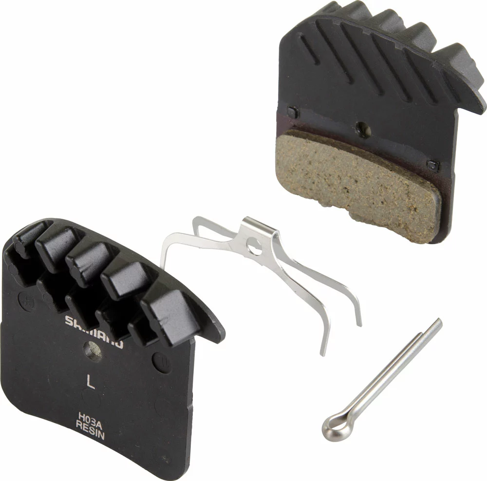 - 1 paire de plaquettes de frein à disque Shimano H03A, y compris le ressort et la goupille de sécurité