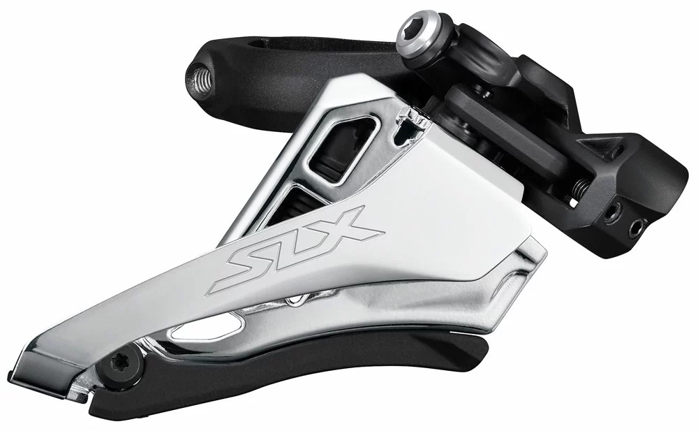 L’élégant dérailleur SLX FD-M7100 12 vitesses de Shimano est disponible en version Direct-Mount (FD-M7100-D), E-Type (FD-M7100-E) ainsi que pour la position centrale du collier de serrage (FD-M7100-M). Les performances de changement de vitesse sont notamment améliorées par la technologie Side-Swing, qui assure un espace libre supplémentaire de 15 mm entre le tube de selle et le pneu.