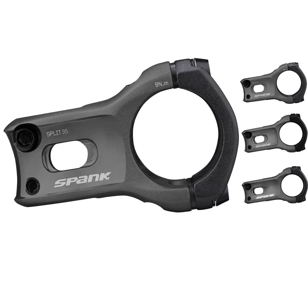 La potence Split de Spank – ici en couleur « gun metal » – est un composant de qualité hautement optimisé en termes de poids pour ton VTT. Le serrage du guidon biseauté, la faible hauteur et le capuchon stylé rendent la potence MTB Spank pour guidon de 35 mm stable, durable et agréable à regarder.