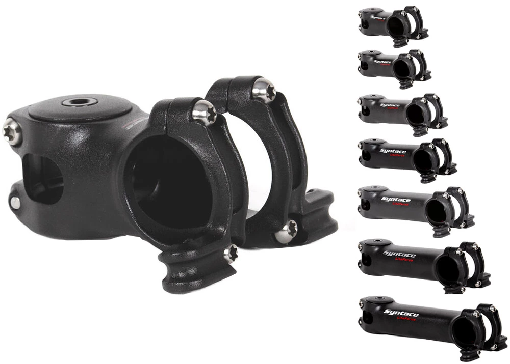 - Tête Syntace 200° avec 4 vis : force de serrage élevée et douce pour le guidon. Meilleure répartition de la force par rapport au serrage à fente