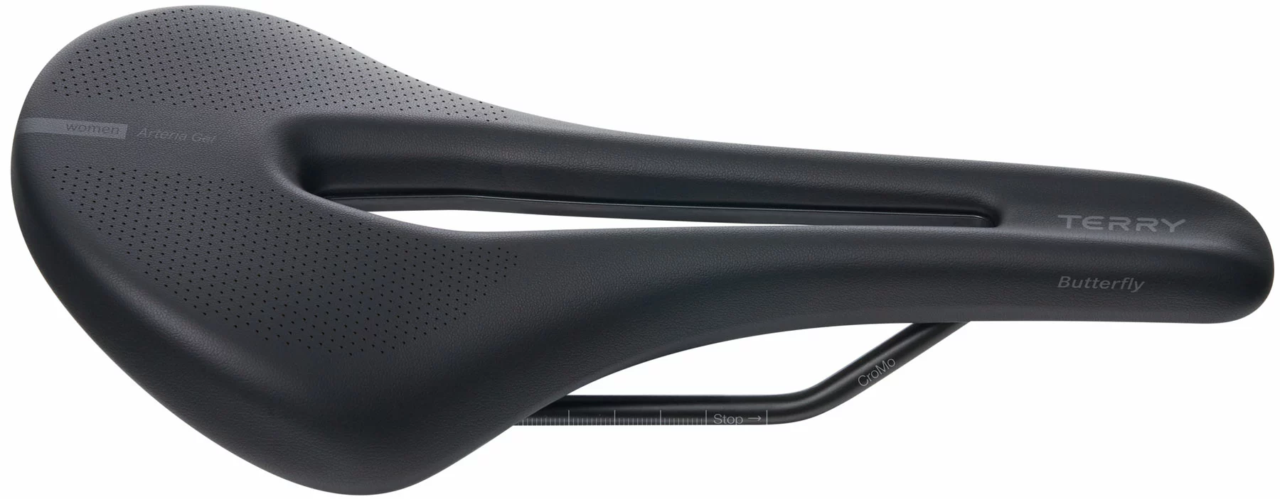 Le nouveau développement de la selle de course Butterfly Arteria Gel Max Women de Terry. Comme son prédécesseur, la nouvelle Arteria est le premier choix pour les longues randonnées en vélo de course ou en VTT. Le réglage adapté à la course de la mousse très innovante, associé à un allègement encore plus radical, assure un plus grand confort.
