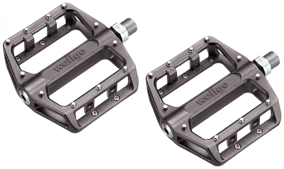 Les pédales de plateforme Wellgo B087B de haute qualité avec paliers lisses étanches pour les exigences les plus élevées sont forgées à partir d’une seule pièce d’aluminium et offrent une surface de contact extra large pour une prise en main sûre.
