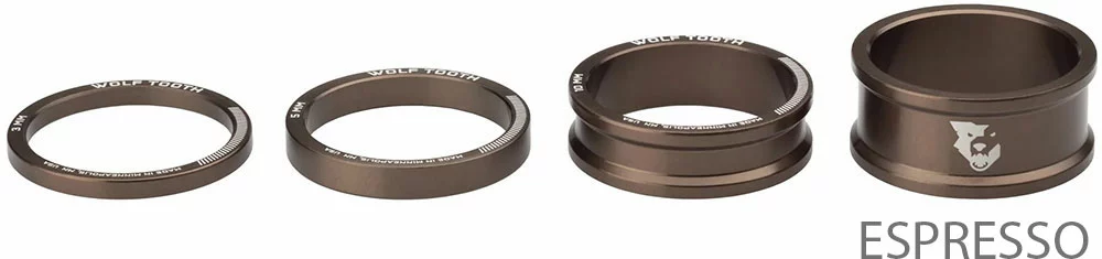 Caractéristiques – Wolf Tooth Components entretoises jeu de direction 4 pces 3/5/10/15 mm